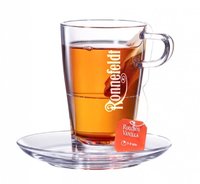 Ronnefeldt Glastasse mit Logo und Untertasse im Set