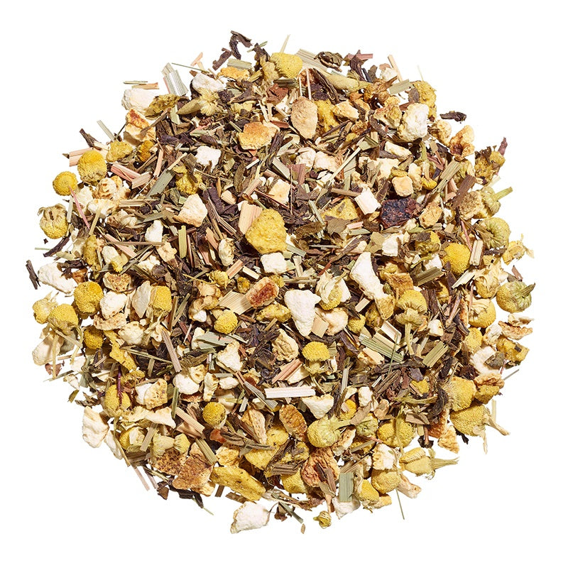 Zutaten: Orangenschale** (37%), Grüner Tee** (27%), Zitronengras**, Kamillenblüten** (8%), Krauseminze**, Orangensaftstückchen** (5%), natürliches Orangenaroma, Thymian**(2%)